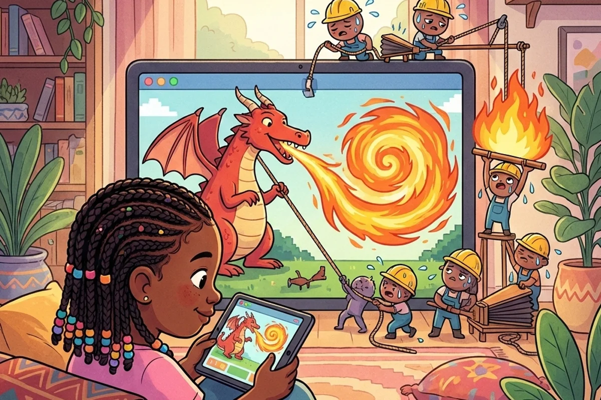 رها کوچولو عاشق بازیهای شلوغ و پر سروصدا بود. از آن بازیهایی که اژدهای بزرگ از دهانش آتش بیرون میداد و ماشینهای مسابقه با صدای «ویژژژژ» از روی تپهها میپریدند. رها هر بار که صفحه تبلت را فشار میداد، از ته دل میخندید و بالا و پایین میپرید.